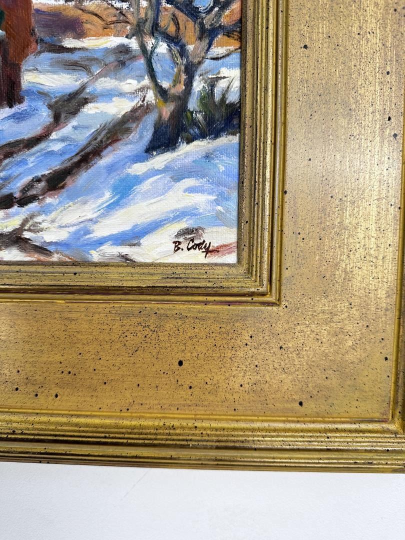 Oil on Board. 12" by 16" unframed. 19 1/2" by 23 1/2" framed. Bruce Cody (20th century) was active/lived in New Mexico. Bruce Cody is known for Regional scene, landscape, structures.