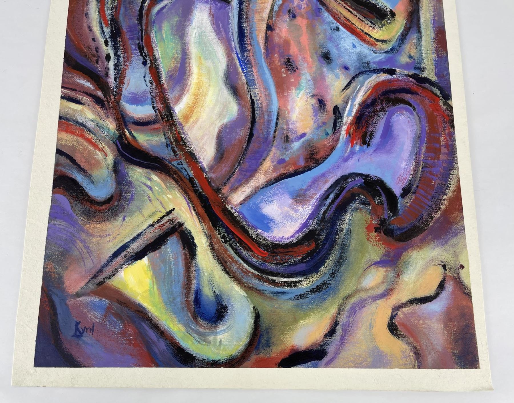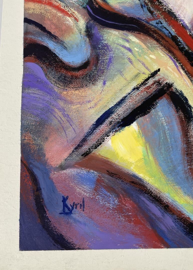 Signed Kyril. 20" by 29.75". Bruce DeFoor has been called the "Renaissance Man" because he has virtually had his hand in almost every type of art for the past 35 years. He began his artistic training at an early age. After receiving his Bachelor’s degree in painting, he chose to work towards a Master of Art Education. Bruce also holds a Masters of Art in sculpture and a Masters of Fine Art in painting. As an instructor at a community college for over 25 years, he taught photography, drawing, sculpture, ceramics, figure drawing, painting, murals, and videography. Because of his experience in so many art fields, Bruce formed D4 Arts to incorporate all those mediums and offer them to the public for purchase or commission work. Although Bruce primarily enjoys painting in pastel and oil, he and his wife, Beth, have been creating stained glass art work, from small to large installations, for a variety of individuals, businesses, and churches for more than 25 years. Painted banners on cloth and photographs on canvas have also been a common commission for D4 Arts. Also recently added to the D4 Arts repertoire of work is tile mosaic.