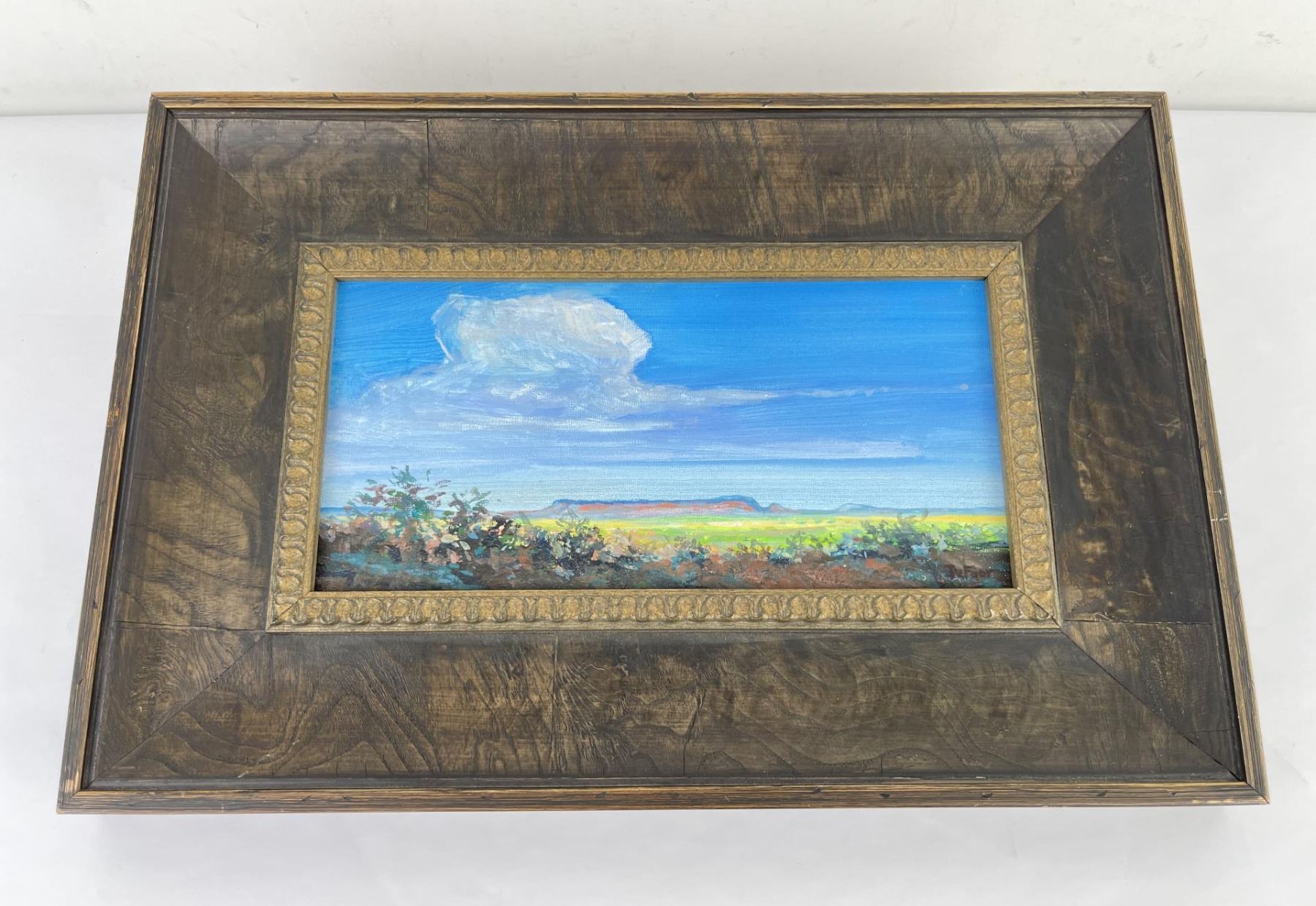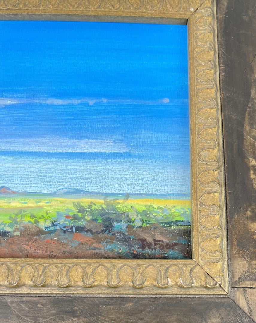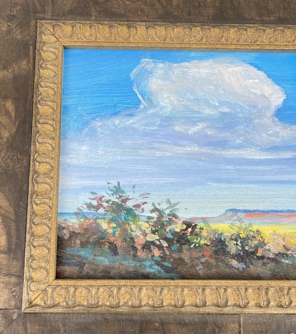 12" by 18" framed. Distant Mesa. Bruce DeFoor has been called the "Renaissance Man" because he has virtually had his hand in almost every type of art for the past 35 years. He began his artistic training at an early age. After receiving his Bachelor’s degree in painting, he chose to work towards a Master of Art Education. Bruce also holds a Masters of Art in sculpture and a Masters of Fine Art in painting. As an instructor at a community college for over 25 years, he taught photography, drawing, sculpture, ceramics, figure drawing, painting, murals, and videography. Because of his experience in so many art fields, Bruce formed D4 Arts to incorporate all those mediums and offer them to the public for purchase or commission work. Although Bruce primarily enjoys painting in pastel and oil, he and his wife, Beth, have been creating stained glass art work, from small to large installations, for a variety of individuals, businesses, and churches for more than 25 years. Painted banners on cloth and photographs on canvas have also been a common commission for D4 Arts. Also recently added to the D4 Arts repertoire of work is tile mosaic.