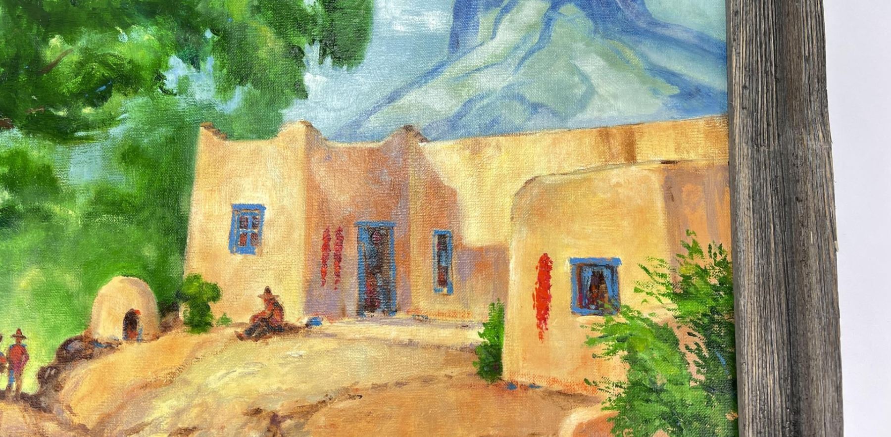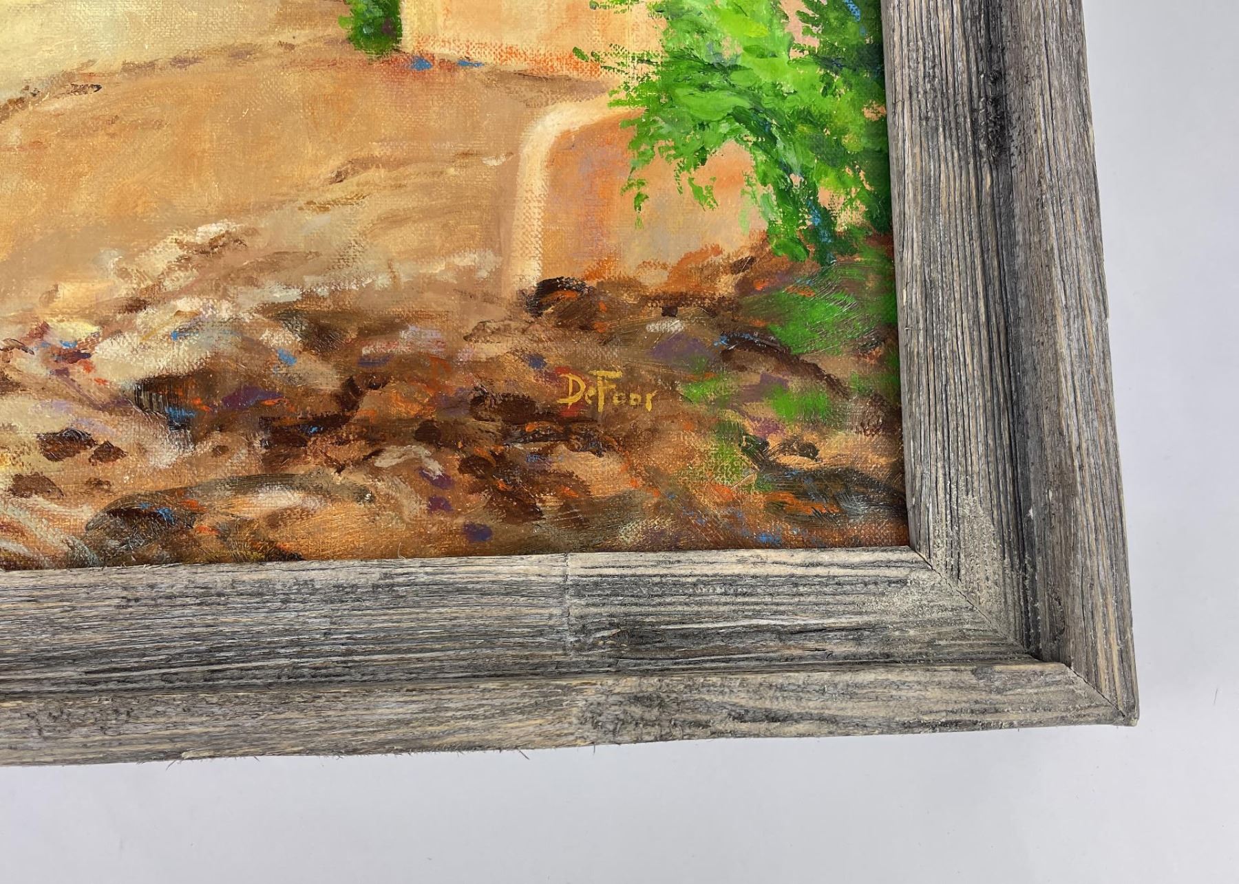 19" by 23" framed. New Mexico. Bruce DeFoor has been called the "Renaissance Man" because he has virtually had his hand in almost every type of art for the past 35 years. He began his artistic training at an early age. After receiving his Bachelor’s degree in painting, he chose to work towards a Master of Art Education. Bruce also holds a Masters of Art in sculpture and a Masters of Fine Art in painting. As an instructor at a community college for over 25 years, he taught photography, drawing, sculpture, ceramics, figure drawing, painting, murals, and videography. Because of his experience in so many art fields, Bruce formed D4 Arts to incorporate all those mediums and offer them to the public for purchase or commission work. Although Bruce primarily enjoys painting in pastel and oil, he and his wife, Beth, have been creating stained glass art work, from small to large installations, for a variety of individuals, businesses, and churches for more than 25 years. Painted banners on cloth and photographs on canvas have also been a common commission for D4 Arts. Also recently added to the D4 Arts repertoire of work is tile mosaic.