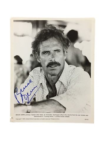 An autographed black and white glossy publicity photo of Bruce Dern from the “Coming Home” released by United Artists ca. 1978. Verso is blank. The photo is in good condition. (Approx. 8 x 10 in.).