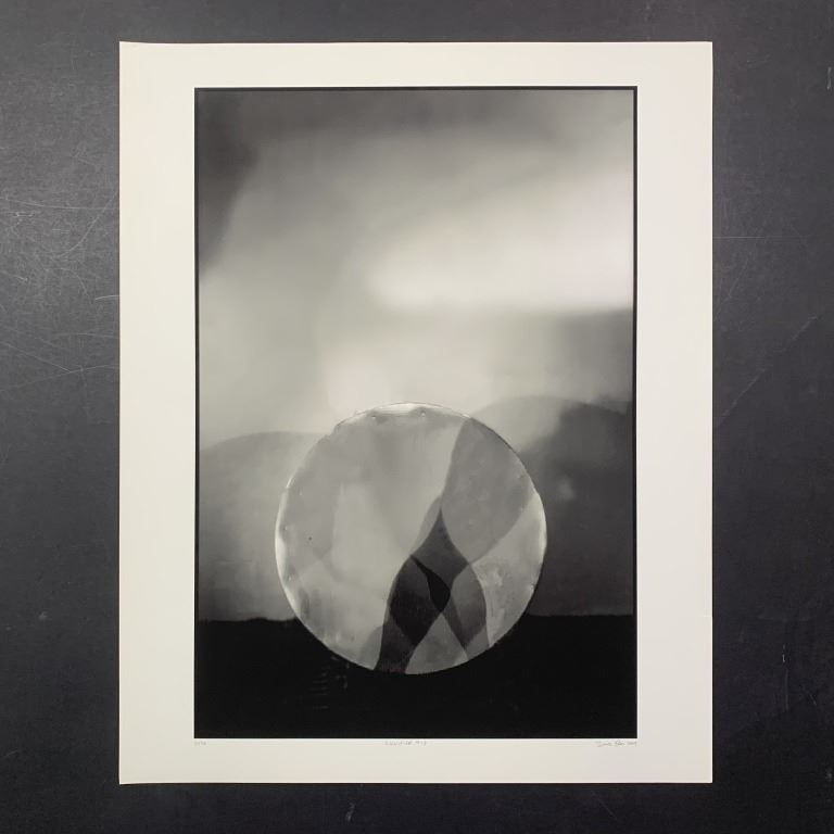 Bruce Evans' "Signifer #10" limited edition print, signed and dated lower right, titled lower middle, and numbered 4/50 lower left. This piece has been done in an abstract like style, of a sphere on the ground, against what appears to be the sky. This piece is in near excellent condition with a small incision at right, and an extremely minor wrinkle upper left corner.