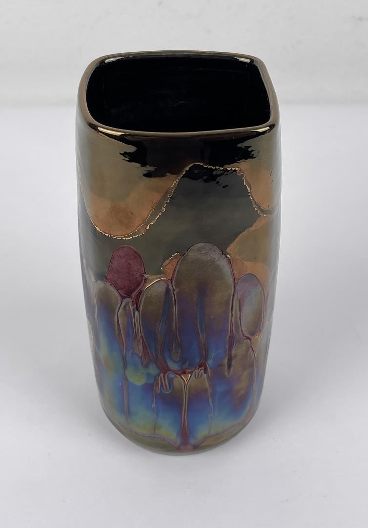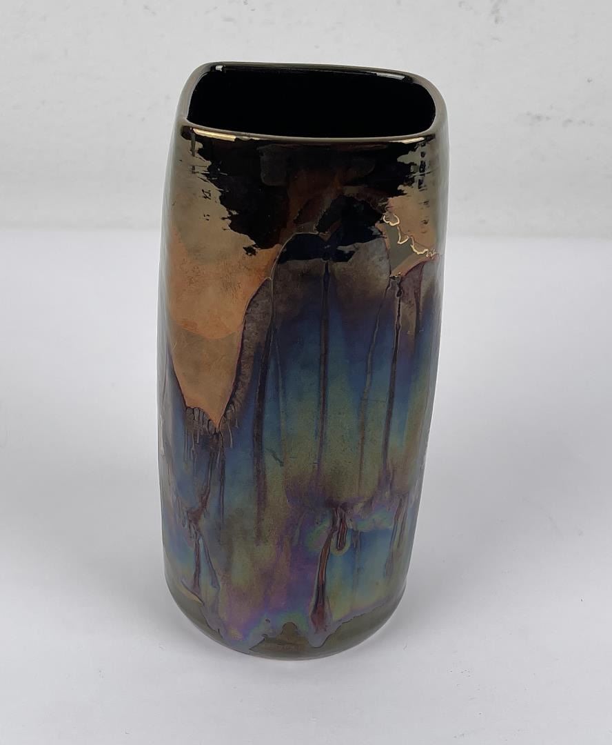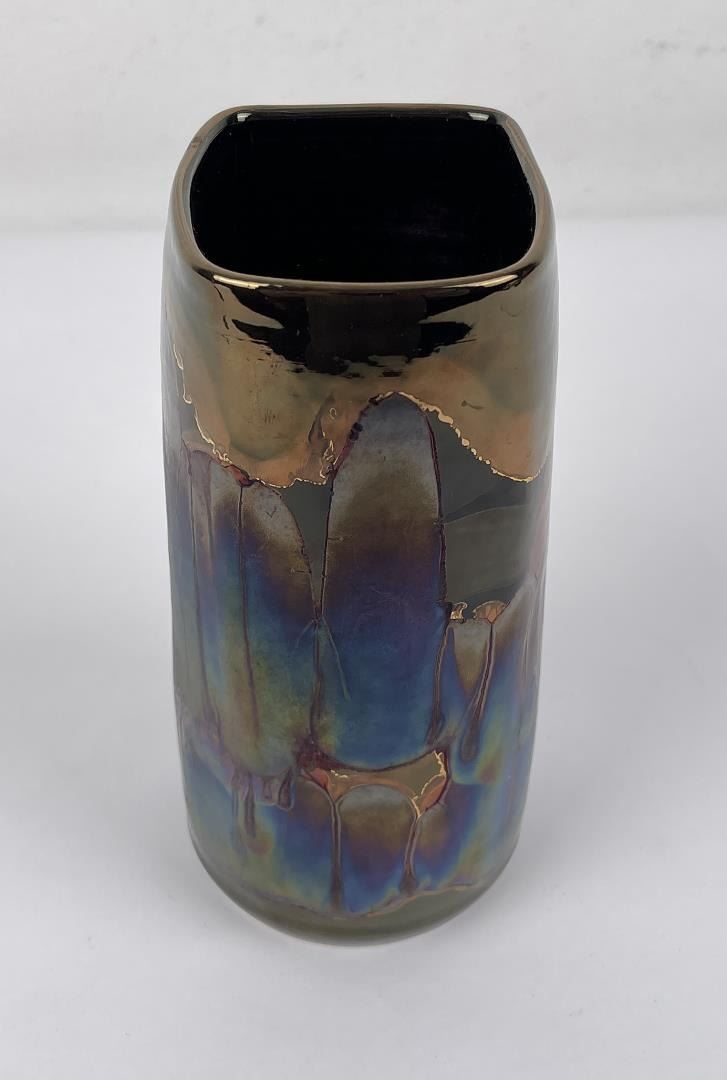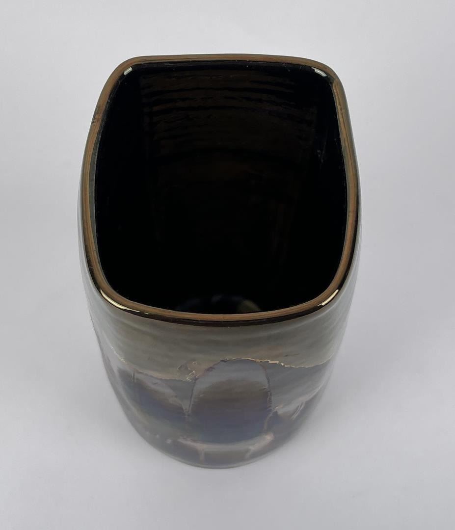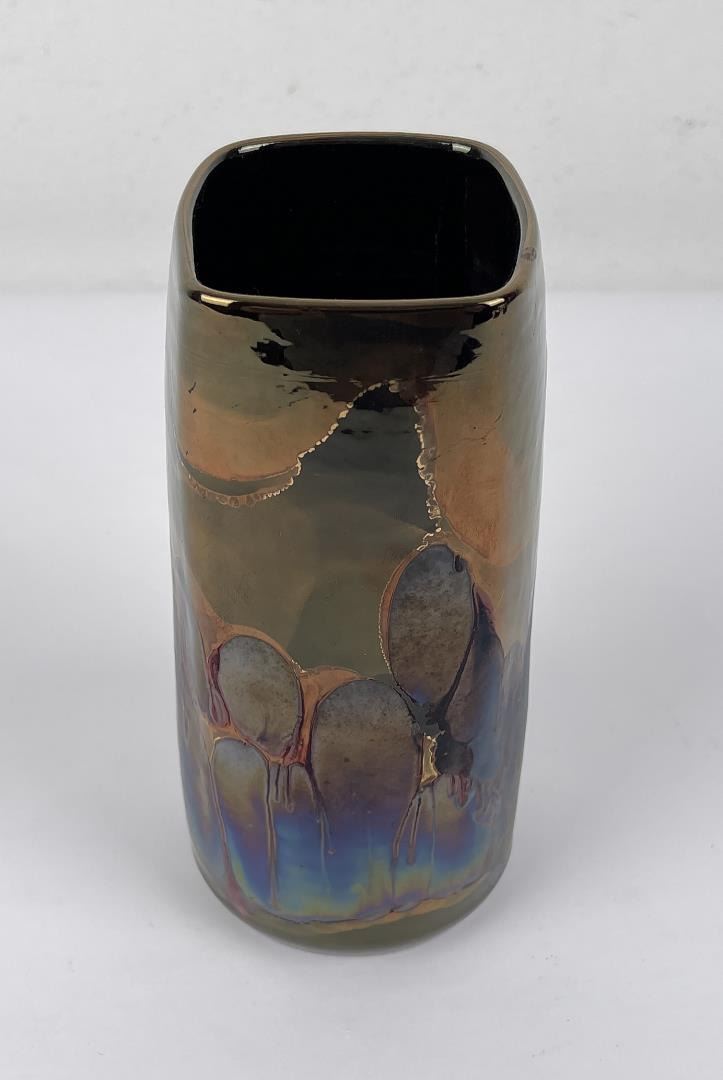 7" tall, 3" wide. Bruce Fairman’s studio is in Sacramento, California in a flourishing artist colony. All of Bruce’s pottery is made from either porcelain or white stoneware clay, and each piece is created individually by hand on a potter’s wheel. Each shape is designed to capture both elegance and classical Oriental simplicity, while ultimately highlighting Bruce’s signature glazes. The glazes used by Fairman he developed himself over years of trial and error, and receive their unique colors and hues from the additional minerals added to the glaze. Fairman’s work has been shown in invitational exhibitions throughout the United States, and his pieces have been featured in galleries as far away as Hong Kong.