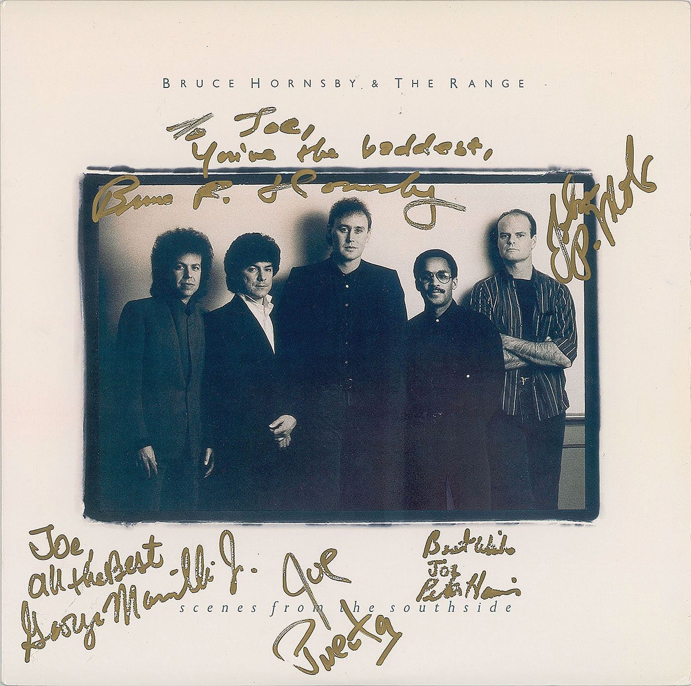 Scenes from the Southside album signed and inscribed on the front cover in gold ink, "To Joe, You're the baddest, Bruce R. Hornsby," "Joe, all the best, George Marinelli, Jr.," "Joe Puerta," "John P. Molo," and "Best wishes, Joe, Peter Harris." In fine to very fine condition. The record is included. Consignor notes that the signatures were obtained at the Renaissance Hotel in Cleveland, Ohio.
