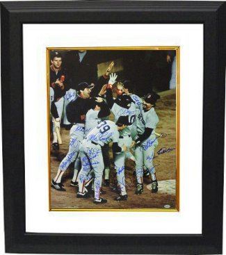 The 1986 Boston Red Sox season involved the Red Sox finishing 1st in the American League East with a record of 95 wins and 66 losses. 1986 was the first time since 1904 that the Yankees finished second in the standings to the Red Sox. This Boston Red Sox 16x20 Photo is signed by 19 players including: Oil Can Boyd, Mike Brown, Wes Gardner, Bruce Hurst, Tim Lollar, Joe Sambito, Calvin Schiraldi, Bob Stanley, Rich Gedman, Marc Sullivan, Marty Barrett, Pat Dodson, Spike Owen, Ed Romero, Dave Stapleton, Mike Greenwell, Dave Henderson, Steve Lyons, and Mike Stenhouse. Leaf Authentics Hologram and Certificate of Authenticity from Athlon Sports. Custom White Mat and Premium Black Frame as shown.