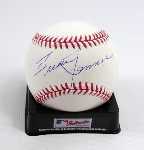 These days, most people don't realize that the infamous Bruce Jenner was once known for having won the gold in the Decathlon at the 1976 Summer Olympics. Today his name is immediately joined to the hip with the Kardashian empire, as well as some continual Michael Jackson style plastic surgery augmentations. But all this only makes him as fresh as today's TMZ headlines! This is Jenner's signature on an official Rawling Official Major League Baseball, a nod to his more sports related youth! The autographed baseball is encased in an Ultra-Pro UV protected Ball Holder. (Custom case is 3"x3").