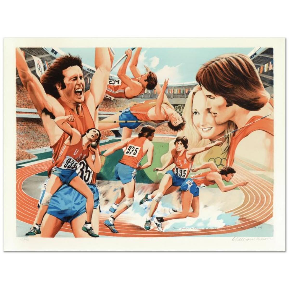 "Bruce Jenner" is a limited edition serigraph on paper by William Nelson, numbered and hand signed by the artist! Measures approx. 29.5" x 22" (with border); 26.5" x 19" (image).