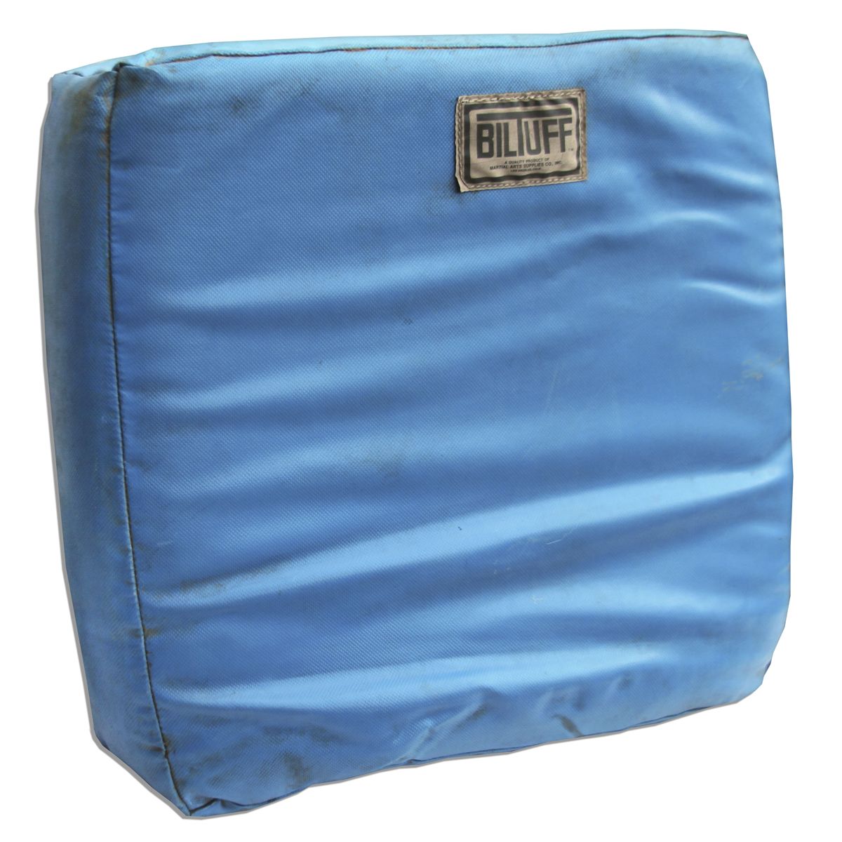 Bruce Lee's kicking shield used in teaching his proprietary martial arts method, Jeet Kune Do. Large, slightly convex padded shield by BilTuff Martial Arts Supplies features a bright blue cover made of durable fabric. Measures 17'' x 16'' x 5''. Fabric handle is torn, else near fine. Quintessential Lee, from the collection of Herb Jackson, whose well-documented friendship with Lee began while he trained in Jeet Kune Do at Lee's Los Angeles martial arts academy in Chinatown. Lee, impressed with Jackson's background in street fighting, in time befriended his student and invited him to train at his home. Just before his fateful move to Hong Kong, Lee gifted many pieces of his martial arts equipment to Jackson. With a COA from Herb Jackson's son.