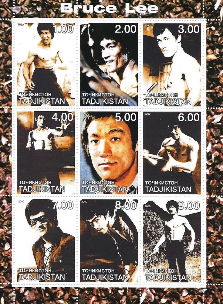 Bruce Lee - Tadjikistan Commemorative Souvenir Sheet of 9 Stamps, 2001