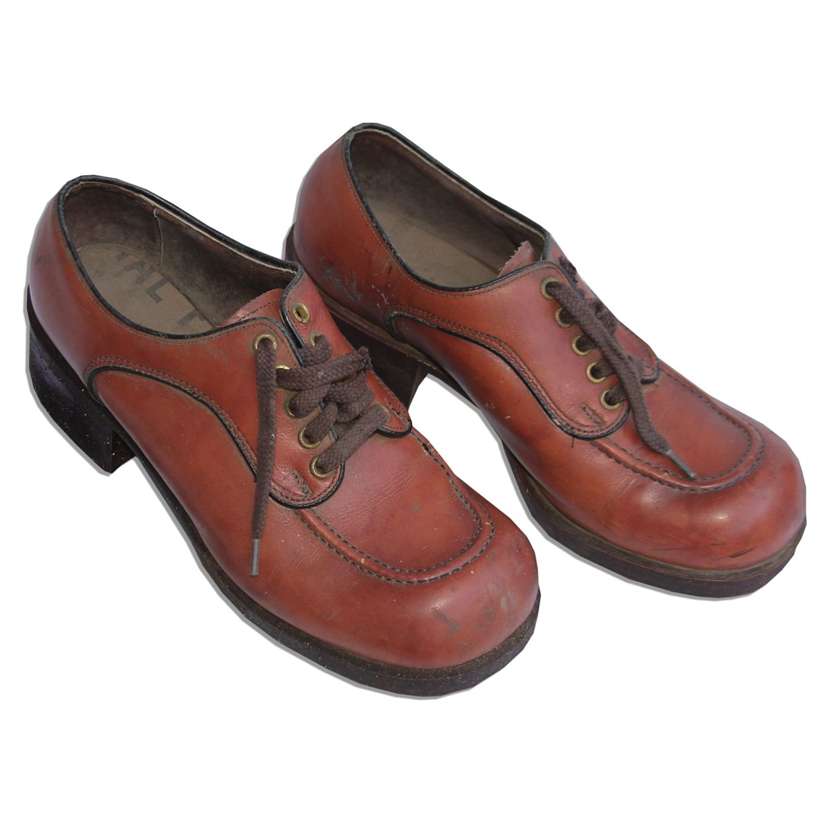 Bruce Lee personally owned and worn shoes. Pair of burnt orange color leather lace-up shoes feature a 0.5'' platform under the front of the foot and a 2'' rubber heel. Shoes are an approximate men's size 7.5. Scuffing, light soiling and laces need replacement, else near fine. Lee's widow distributed his shoes between the two men closest to Lee who were most similar in shoe size - his brother and his close friend Herb Jackson, well-documented as a first generation Jeet Kune Do student and maker of Lee's custom martial arts training equipment. With a COA from Jackson's son.