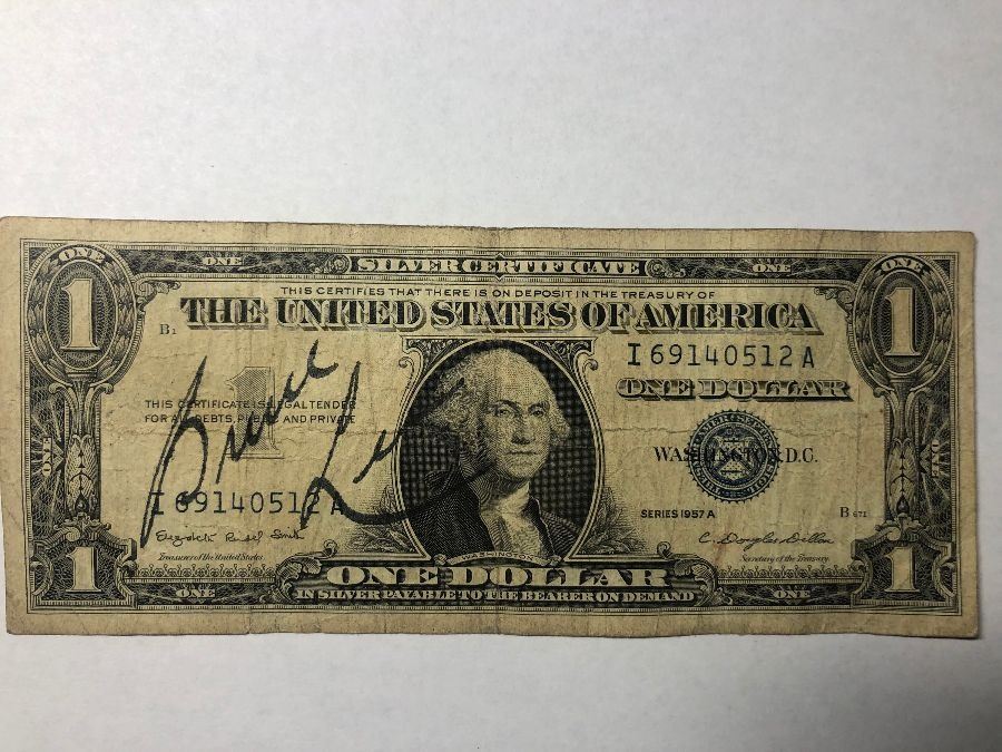 Signed by Bruce Lee This item comes in a hard acrylic currency display case