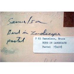 Bruce Samuelson, " Bird in Landscape", pastel on paper, signed Samuelson '75, (U.L.), listed 20th C., framed, image measures 7 1/2" x 10 1/2"