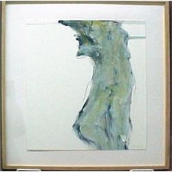 Bruce Samuelson, "Green Figure", signed Samuelson '78 (L.R.), framed oil on paper, listed 20th C. artist, image measures 8 1/4" x 16 3/4"