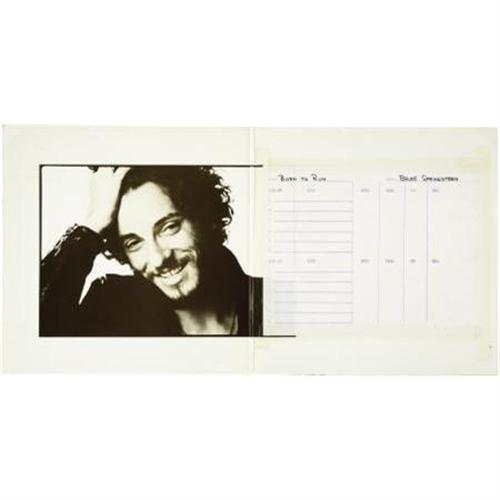 <B>Bruce Springsteen</B></I> <B><I>Born to Run</B></I></B></I> <B>Promo LP (Columbia Advance Promotional, 1975).</B></I> We've offered a promo copy of The Boss' breakthrough album before, but this was an earlier promo, sometimes referred to as "The Script" cover owing to the cursive lettering that was later replaced for the final version of the cover. The white label's different, too, as you can see at our website. Rather than a prominent "Columbia" the label has "Advance Promotional." Included is a timing sheet taped to the inside of the gatefold cover, blank except for the neatly printed "Born To Run" and "Bruce Springsteen" filled in. Also included is a spec sheet titled "Album Cover Copy And Mastering," which does list the song selections and production information. Very nice copy of a rare Boss artifact. Condition: VG-EX 6 (cover)/ EX 7 (record).<BR><BR><b>Shipping:</b> Recordings (<a target="_blank" href="http://www.heritageauctions.com/common/shipping.php">view shipping information</a>)
