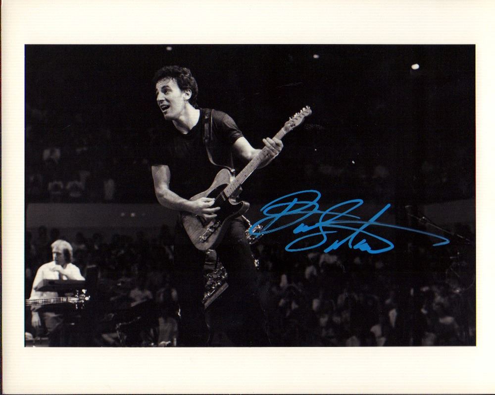 Black and white original 8x10 photo of Bruce Springsteen taken by famed photographer Neal Preston. Bruce signed the photo in blue ink. The photo is stamped with Preston's information and was used in an exhibit of his work in New York City. The signature has been verified by Global Authentics and issued number GV876316. All items come with a certificate of authenticity good for the life of the piece.