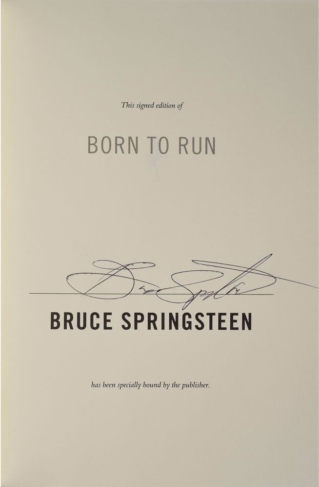 Signed book: Born to Run. Specially bound signed edition. NY: Simon & Schuster, 2016. Hardcover with dust jacket, 6.5 x 9.5, 510 pages. Signed on the colophon in black ballpoint. In fine condition.