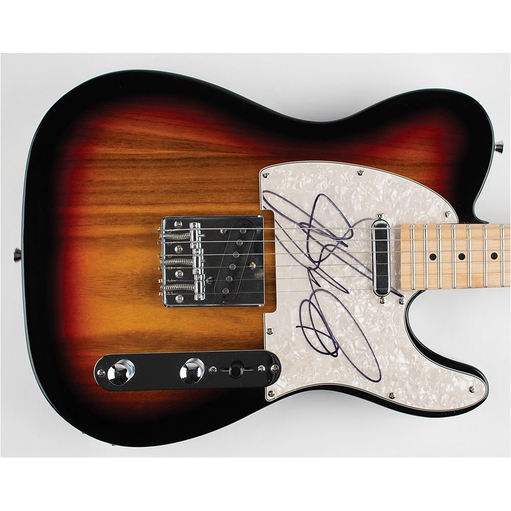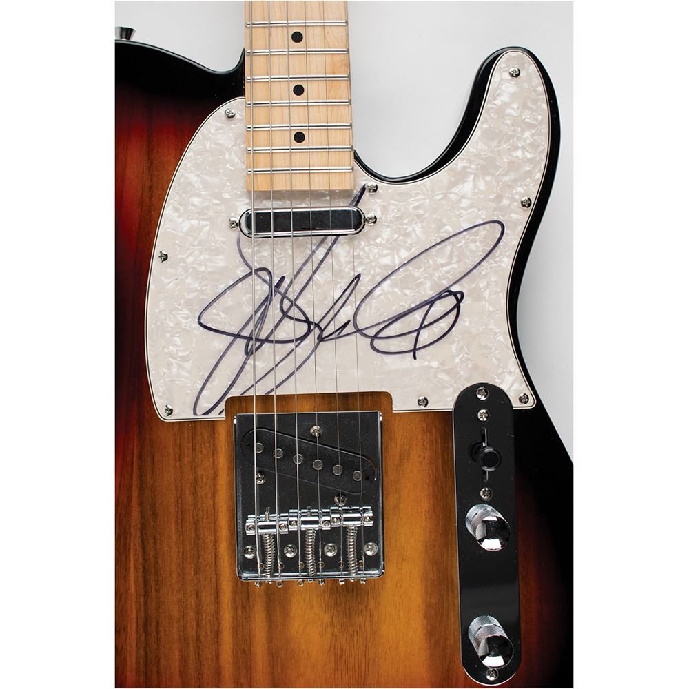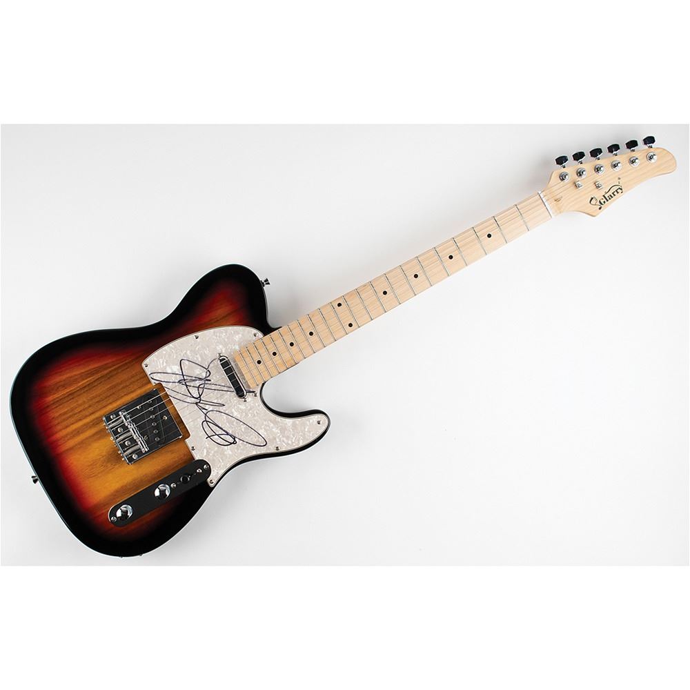 Attractive black-bodied Glarry Telecaster-style electric guitar with a sunburst finish, signed on the pearloid pickguard in black felt tip by Bruce Springsteen. In fine condition.