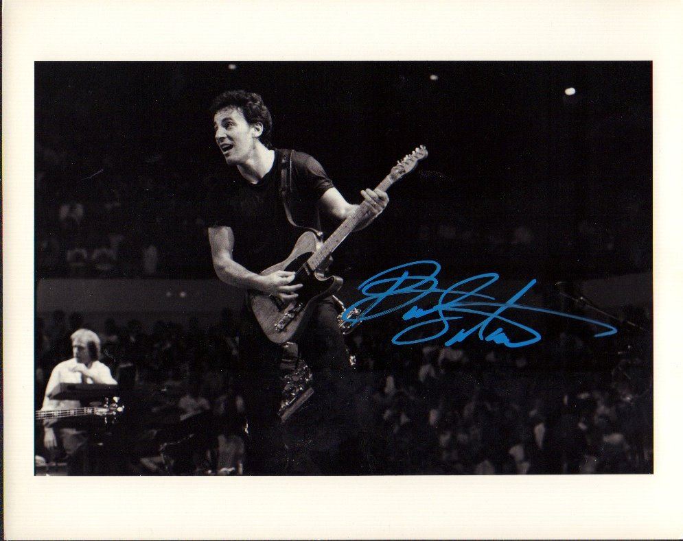 Black and white 8x10 photo taken by famed photographer Neal Preston and signed by Bruce Springsteen. The silver gelatin photo is on heavyweight paper and has Neal Preston's information stamped on the back of the photo. Galleries get $500 for an unsigned Preston photo. All items come with a certificate of authenticity good for the life of the piece.