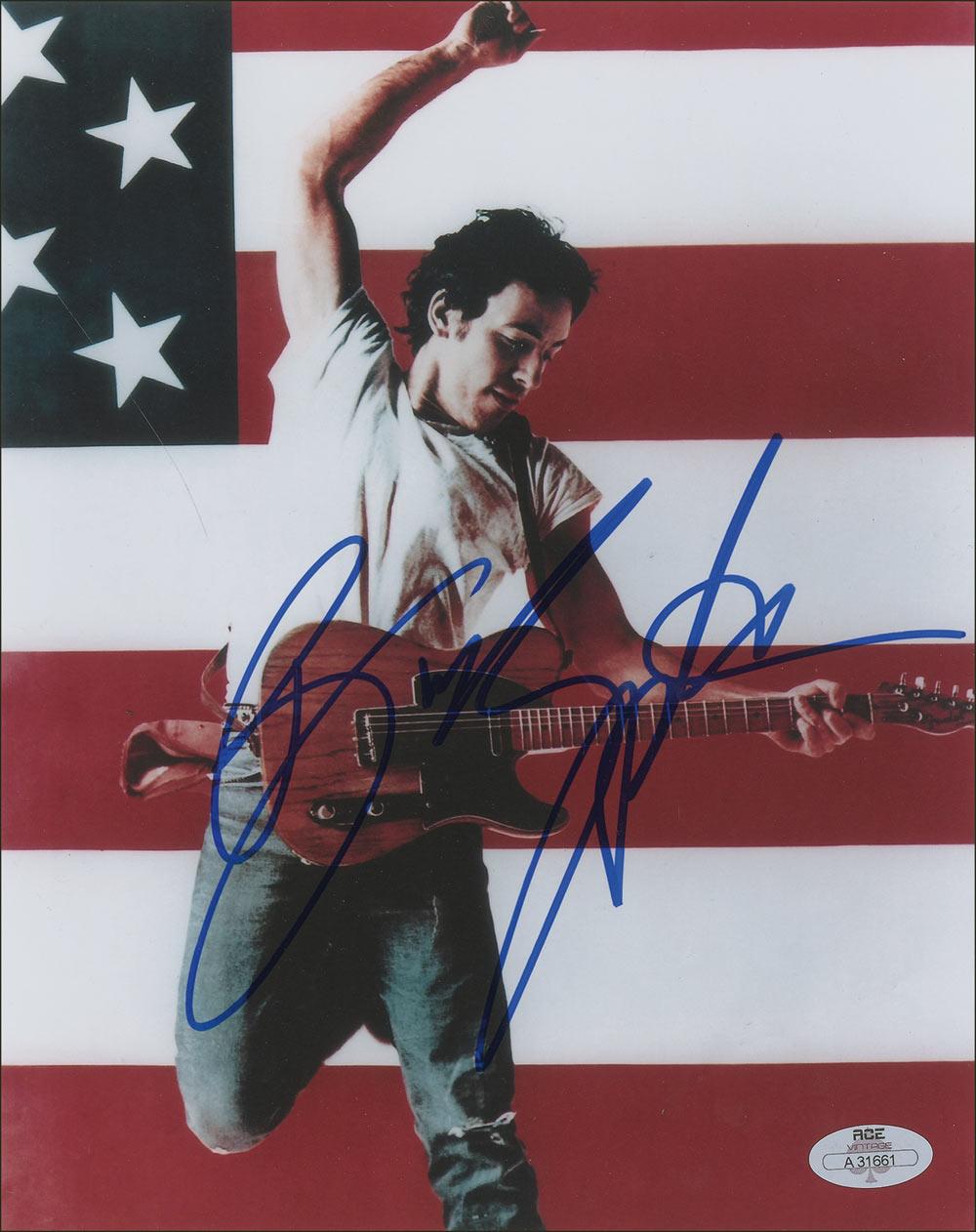 Color satin-finish 8 x 10 photo from Born in the USA, signed in blue felt tip. An authentication label affixed to lower right corner, otherwise very fine condition.
