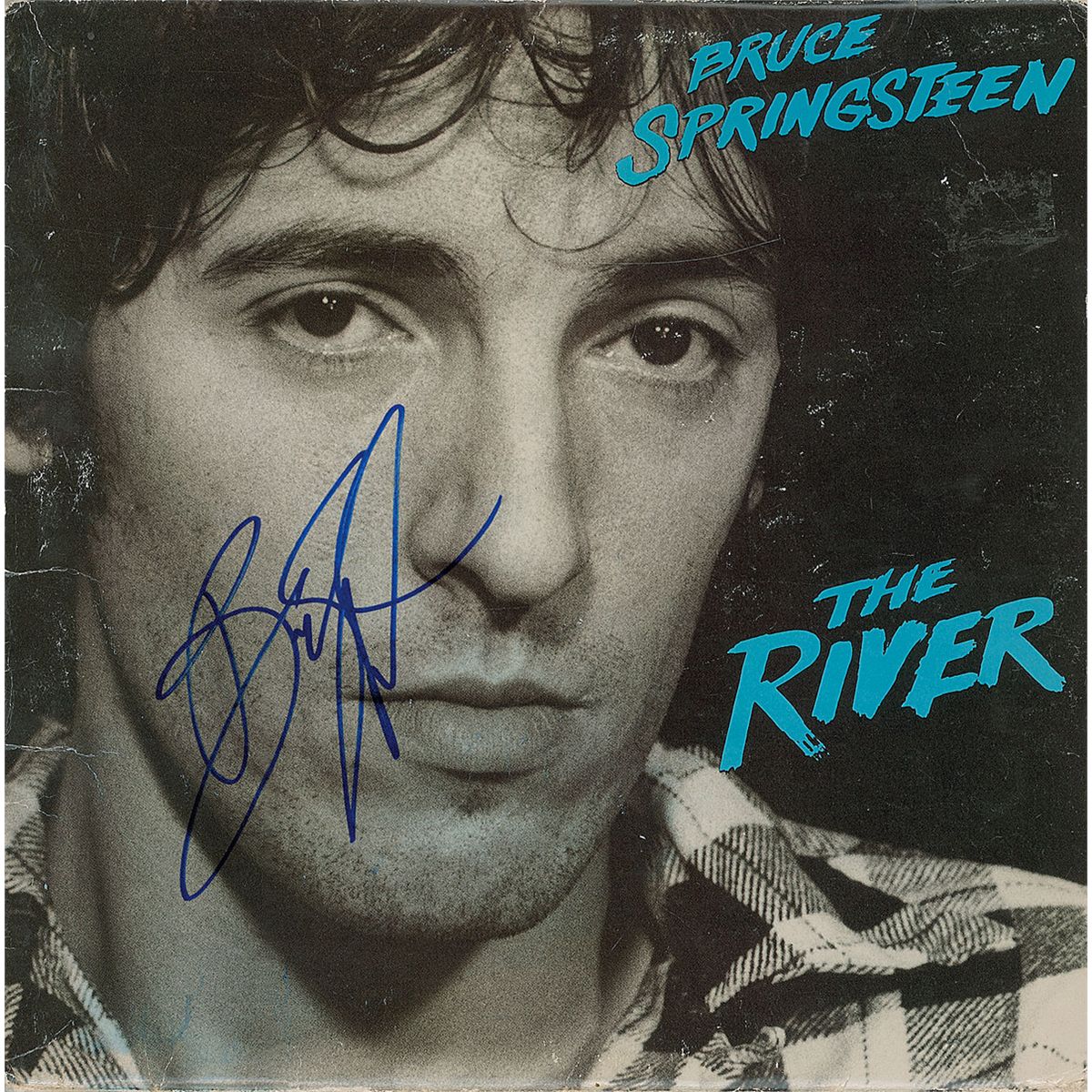 The River album signed in-person on the front cover in blue felt tip. Scattered creases, impressions, and rubbing, otherwise fine condition. The record is not included. Originally obtained by in person specialist Mike Wehrmann.
