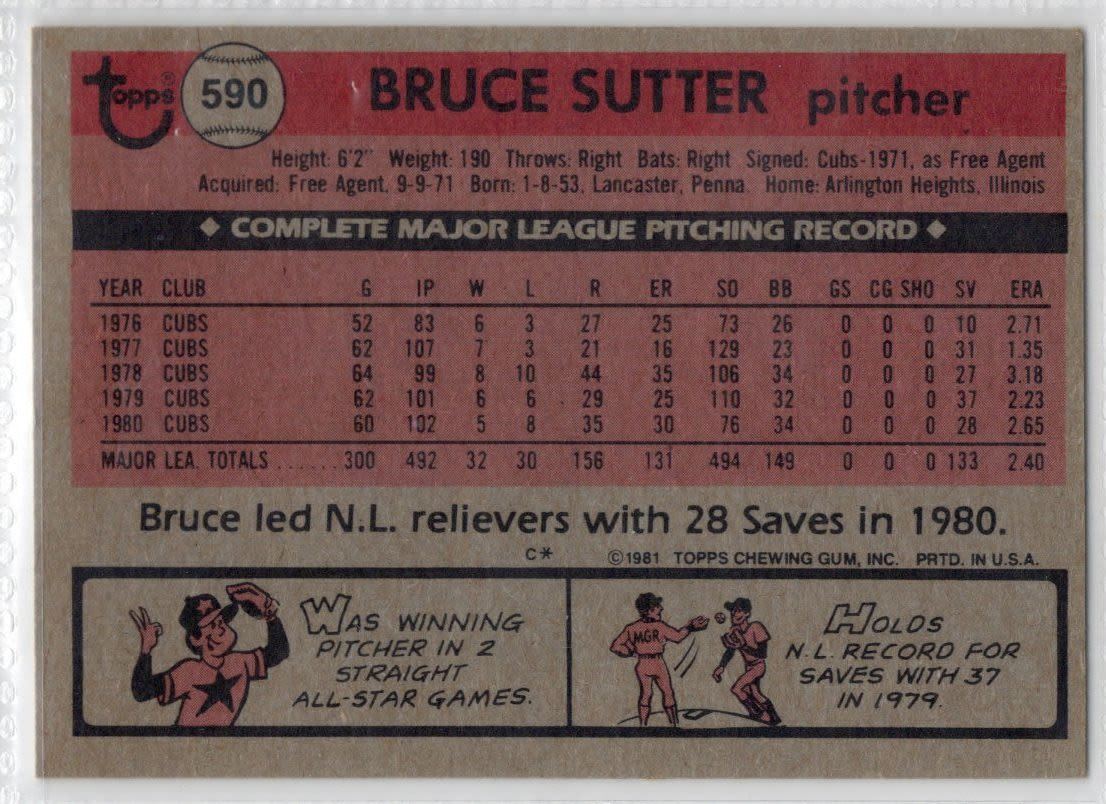 Bruce Sutter 1981 Topps Card Number 590