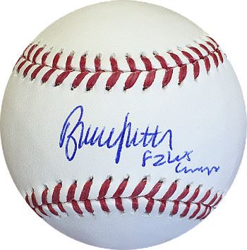One of the sport's dominant relievers in the late 1970s and early 1980s, Bruce Sutter became the only pitcher to lead the National League in saves five times (1979–1982, 1984), and retired with 300 saves – at the time, the third highest total in history, behind Rollie Fingers (341) and Rich "Goose" Gossage (302), and an NL record until broken by Lee Smith in 1993; Sutter had set the NL record in 1982 with his 194th save, surpassing the mark held by Roy Face. In his first nine seasons, only Kent Tekulve made more appearances, and he saved 133 of the Chicago Cubs' 379 wins between 1976 and 1980. In 1979, Sutter won the NL's Cy Young Award as the league's top pitcher. He was inducted into the Baseball Hall of Fame in Cooperstown in 2006. Bruce Sutter has hand signed this Official Major League Baseball with 82 WS Champs. MAB Hologram and Certificate of Authenticity from Athlon Sports.