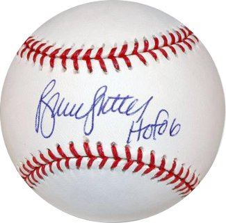 One of the sport's dominant relievers in the late 1970s and early 1980s, Bruce Sutter became the only pitcher to lead the National League in saves five times (1979–1982, 1984), and retired with 300 saves – at the time, the third highest total in history, behind Rollie Fingers (341) and Rich "Goose" Gossage (302), and an NL record until broken by Lee Smith in 1993; Sutter had set the NL record in 1982 with his 194th save, surpassing the mark held by Roy Face. In his first nine seasons, only Kent Tekulve made more appearances, and he saved 133 of the Chicago Cubs' 379 wins between 1976 and 1980. In 1979, Sutter won the NL's Cy Young Award as the league's top pitcher. He was inducted into the Baseball Hall of Fame in Cooperstown in 2006. Bruce Sutter has hand signed this Official Major League Baseball with HOF 06 inscription. MAB Hologram and Certificate of Authenticity from Athlon Sports.