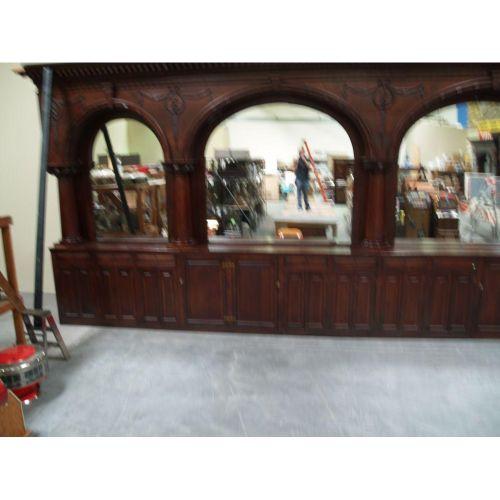 28' 1" wide 11' 3 1/2 " Tall 20 " deep Incredible 1/4 sawn grain You may preview the bar at our gallery at any time. It will not be brought to the auction site.