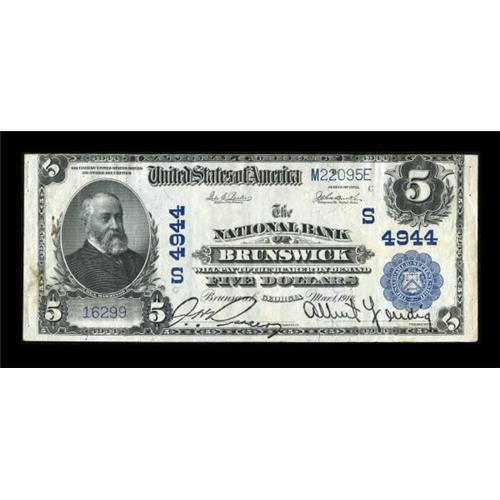 <B>Brunswick, GA</B></I> - $5 1902 Plain Back Fr. 605 <B>The NB of Brunswick</B></I> Ch. # (S)4944<BR> Bright paper and much crispness remain on this note that exhibits a few pinholes and light staining. <B>Very Fine+.</B></I><BR><BR><b>Shipping:</b> Coins & Currency (<a target="_blank" href="http://www.heritageauctions.com/common/shipping.php">view shipping information</a>)