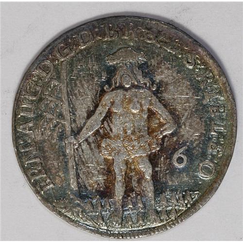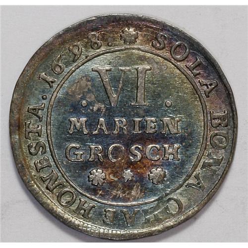<B>Brunswick-Luneburg-Calenberg. Trio of Silver Types, </B></I>KM375 6 Mariengroschen 1698, nice XF-AU, beautiful iridescent patina, KM176 1/8 Taler 1727-CPS, death of George I, toned AU and KM404 1/6 Taler 1800-C, nicely toned.