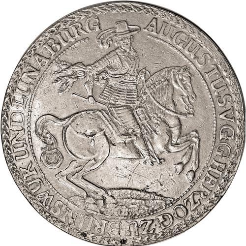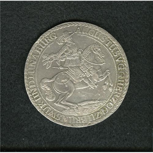 <B>Brunswick-Wolfenbuttel. August Broad 2 Taler 1660, </B></I>Davenport LS72A, "2" not stamped in," KM451.2, very lightly toned XF+, small X scratch in the field below the horse, barely noticeable. 57.31 grams.