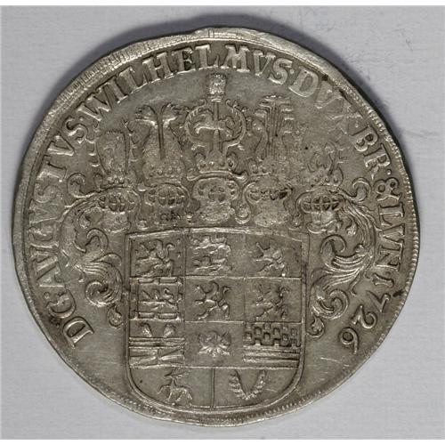 <B>Brunswick-Wolfenbuttel. August Wilhelm Taler 1726EPH,</B></I> KM739, Dav-2126, cleaned XF with the normal slightly soft strike.<BR><I>From the Blue Ridge Collection</B></I><BR><BR><b>Shipping:</b> Coin/Currency (<a target="_blank" href="http://www.heritageauctions.com/common/shipping.php">view shipping information</a>)