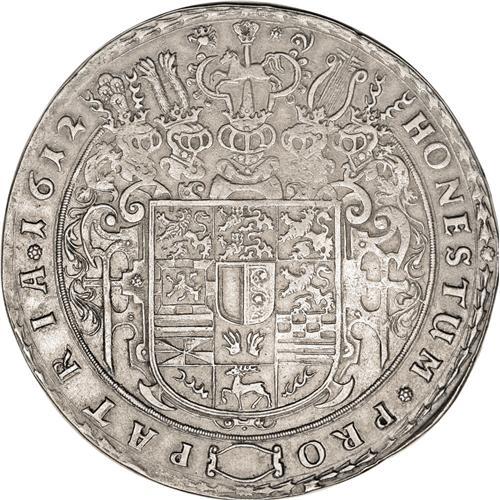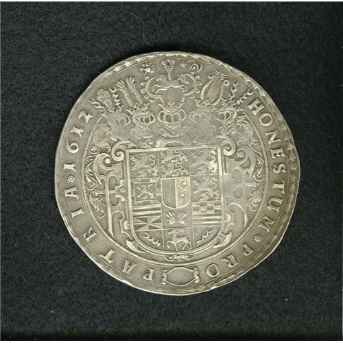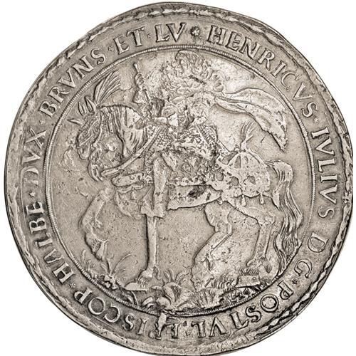 <B>Brunswick-Wolfenbuttel. Heinrich Julius Broad 2 Taler 1612, </B></I>Davenport LS32A, 2 not punched in, KM38, nicely toned VF+, noticeable planchet laminations on the horse and rider. Very scarce early multiple Taler. 57.67 grams.