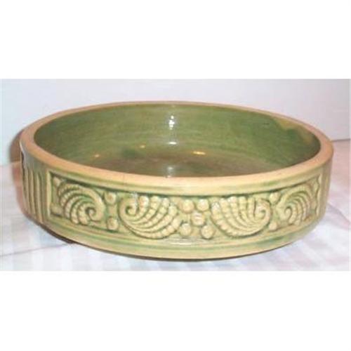 This fantastic early Brush McCoy Green Sea Shell Decorated Footed Bulb Bowl is in SUPERIOR condition with no chips, cracks, dings or hairlines and it measures 8" in diameter and stands 2" tall.