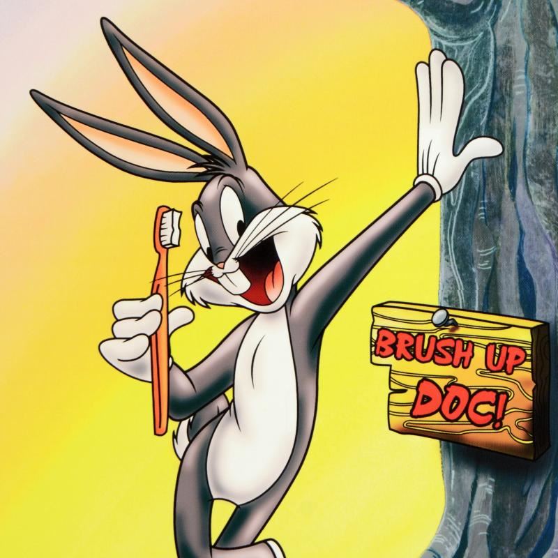 "Brush Up Doc" is an open edition collectible giclee on canvas from Warner Bros., gallery wrapped and ready to hang! Measures approx. 18" x 24" (image).