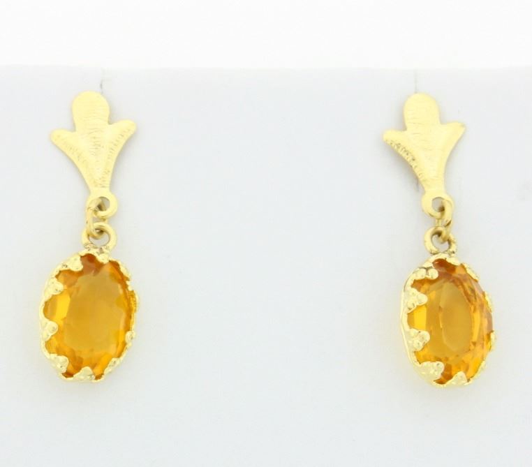 Lovely 14k yellow brushed gold dangle earrings with gorgeous Citrine gemstones, oval cut 8mm x 6mm. 1.2g