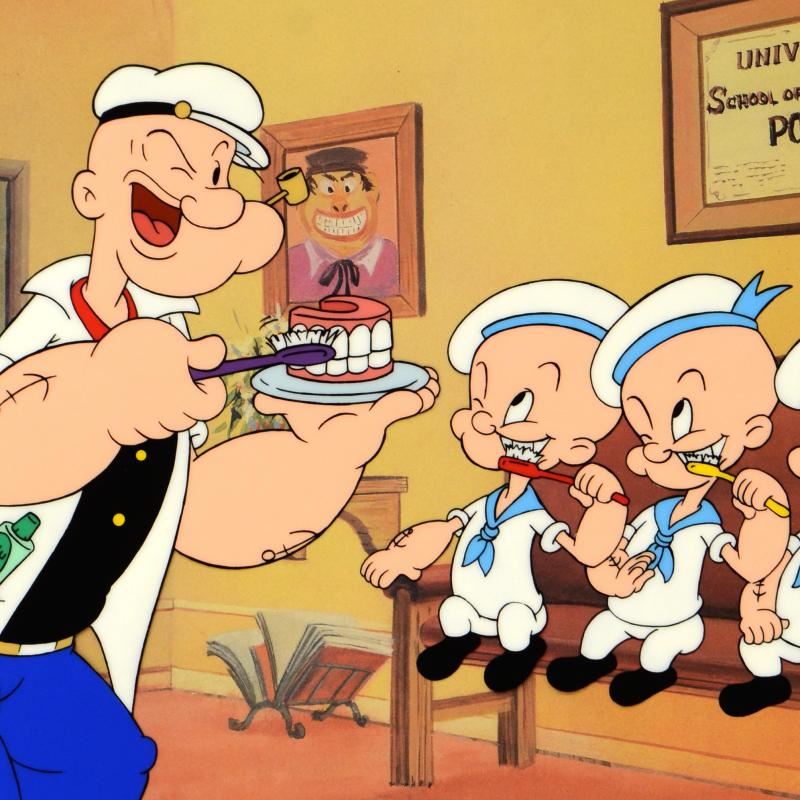 "Brushing 101" is a limited edition hand inked and hand painted animation cel with background, numbered and hand signed by Myron Waldman (1908-2006). Includes Certificate of Authenticity! Measures approx. 14" x 12" (background), 12" x 9" (cel).