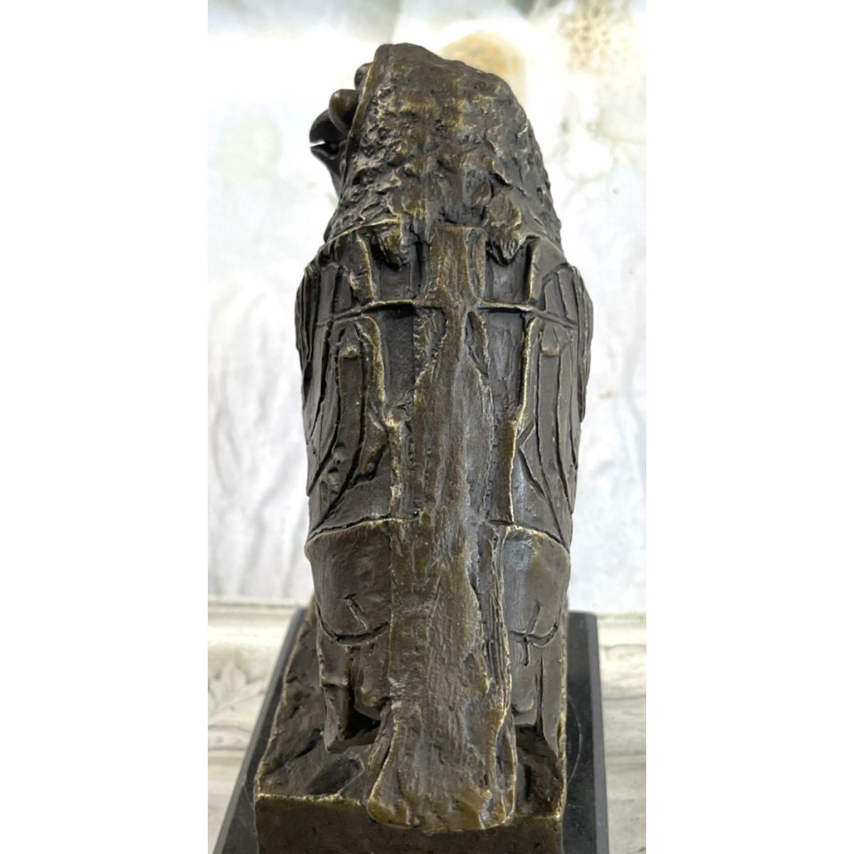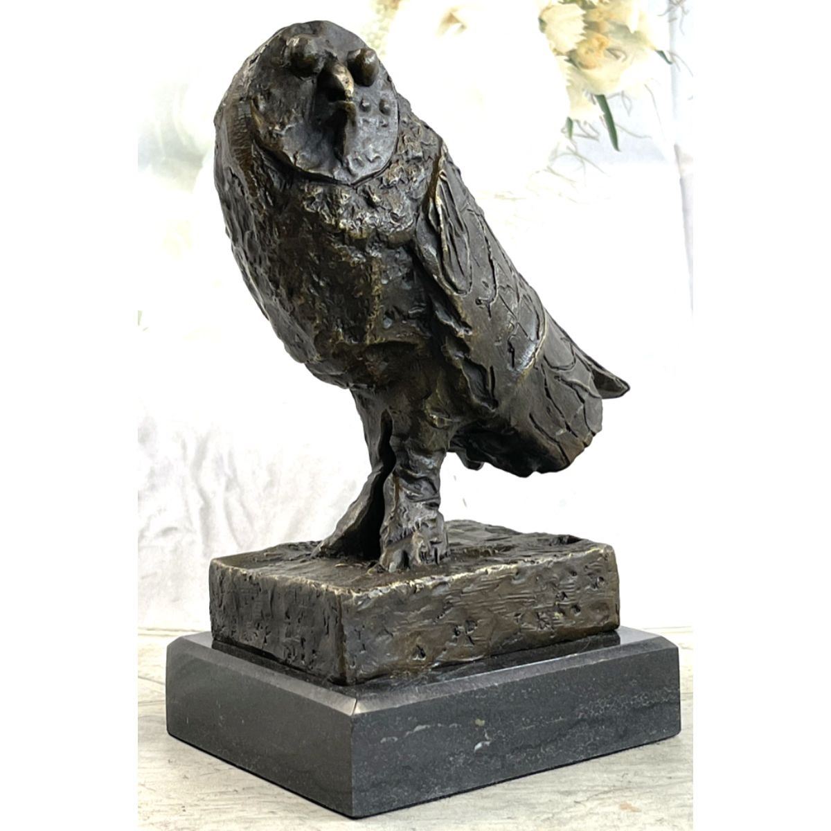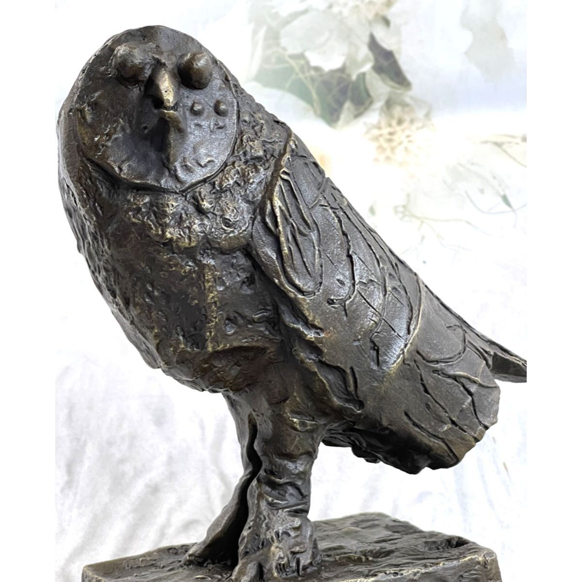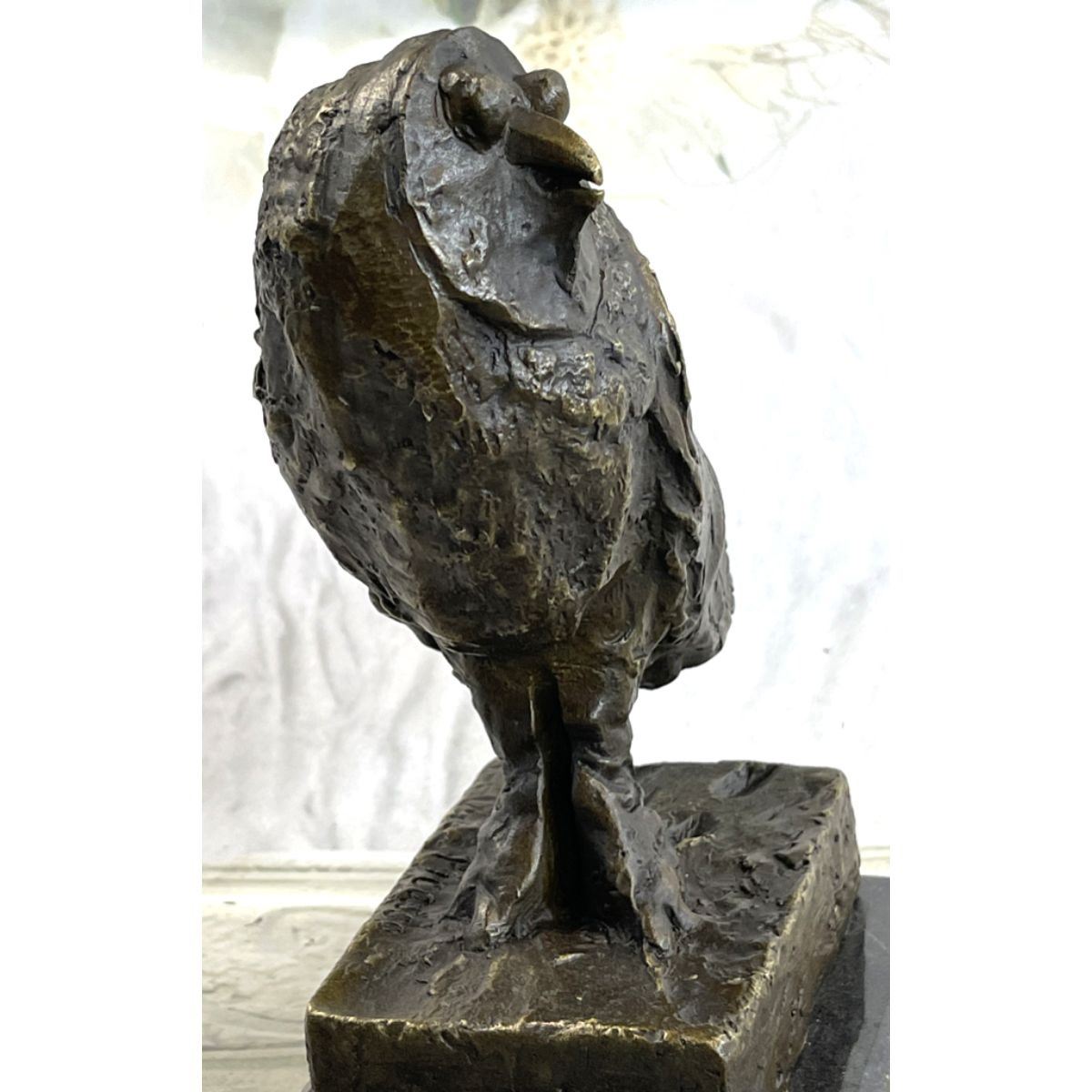 After Picasso, Brutalist style sculpture of an owl. Lost wax casting method bronze, with brown patina, mounted on a marble base. 9" H X 8" W. 8lbs.Â