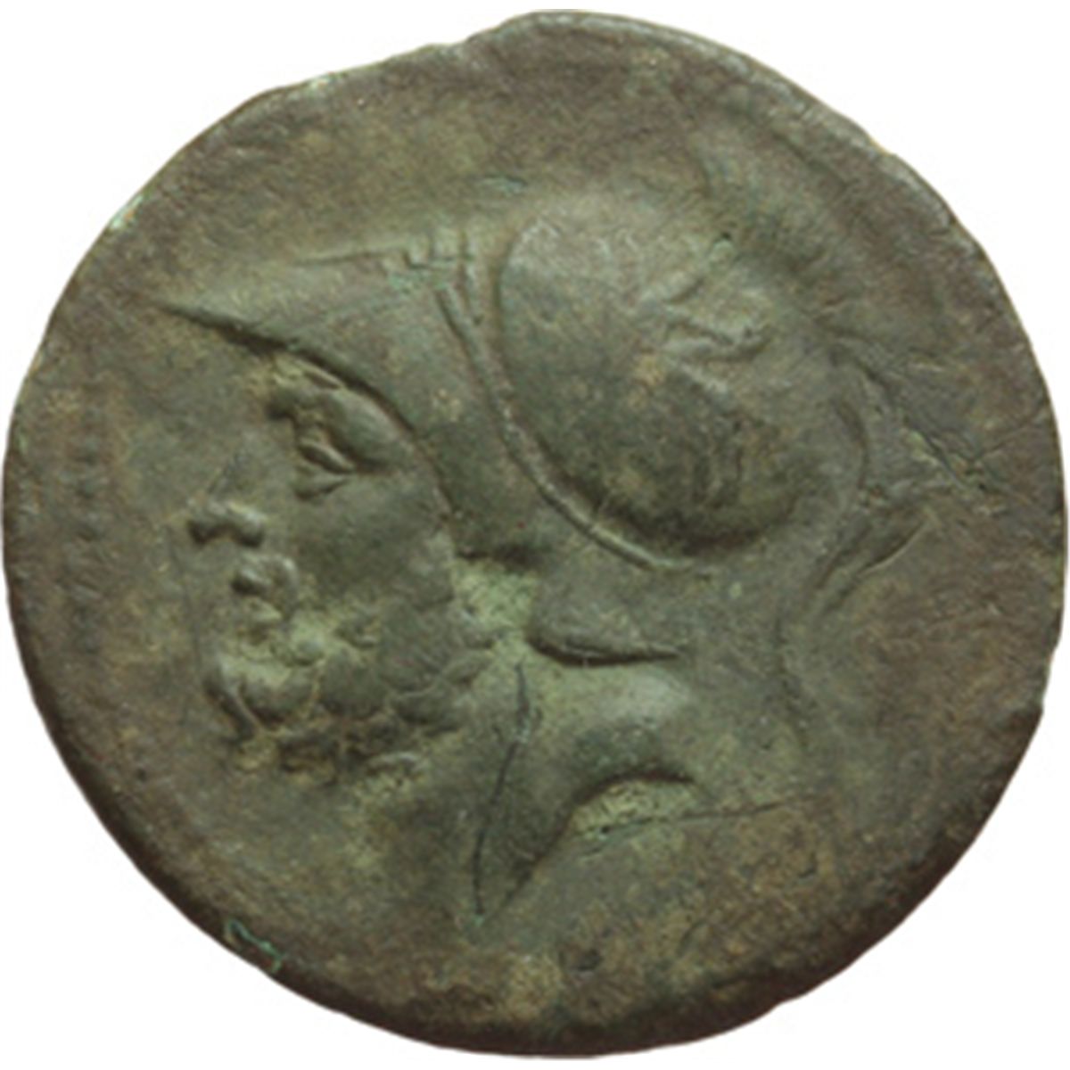 Mondo Greco. Italia Greca. Bruttium, Bruttii. AE didracma, 214-211 a.C. D/ Testa di Ares a sinistra che indossa elmo corinzio. R/ BPETTIΩΝ. Hera Hoplosmia avanza a destra tenendo scudo e lancia. A destra, fulmine. ANG ANS 76. AE. g. 14.54 mm. 26.50 Bel BB+/BB.