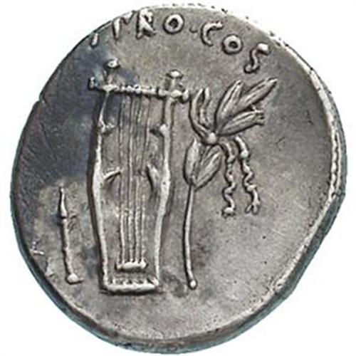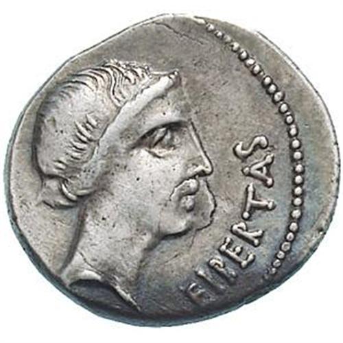 Repubblica Romana. Brutus. Denarius, 43-42 a-C. D/ [L]EIBERTAS. Testa della Libertas a destra. R/ [CAEPIO BRVTVS] PRO COS. Plettro, lira e ramo. Cr. 501/1. gr. 3.95 RR. AG. qSPL.