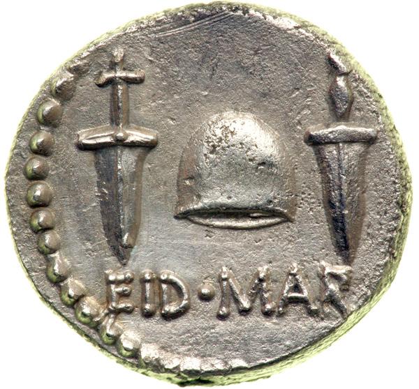 Nominated as the preeminent coin of One Hundred Greatest Ancient Coins by Harlan Berk, this denarius commemorates the assassination of Julius Caesar on the Ides of March (15 March), 44 BC.