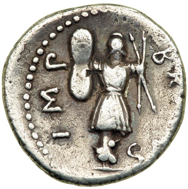 Brutus, d. 42 BC. AR Denarius (3.60 g) minted 43-42 BC at a mint moving with Brutus. VF