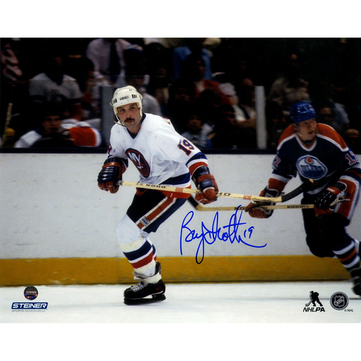 Bryan Trottier Signed White Jersey Skating 8x10 Photo