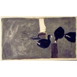 COOTS #2, 1961, oil painting on canvas, 28 x 48", initialed and dated upper left, framed, cracking upper center, few dings. Provenance: Lytton Collection; Felix Landau Gallery, Los Angeles. $300/500
