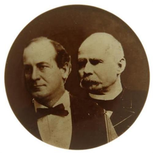 <B>Bryan and Stevenson: Uncommon 1 1/4" Variety</B></I> in choice condition. The more natural design a campaign pin is to picture the presidential contender facing his running mate. In this design the portraits are facing the same direction and toward the left.<BR><BR><b>Shipping:</b> Miscellaneous Collectibles, Smal (<a target="_blank" href="http://www.heritageauctions.com/common/shipping.php">view shipping information</a>)