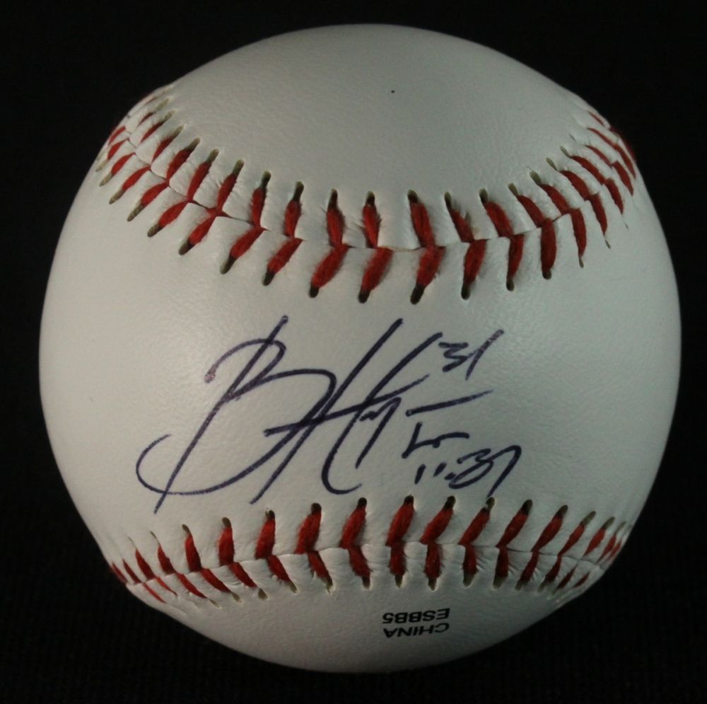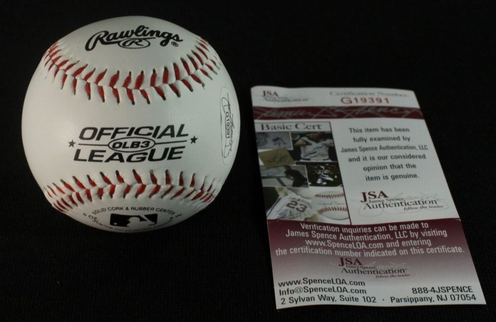 Official League Baseball hand-signed in blue ink by Bryce Harper (Nationals). The autograph includes an official James Spence Authentication (JSA) hologram and matching COA for authenticity purposes.