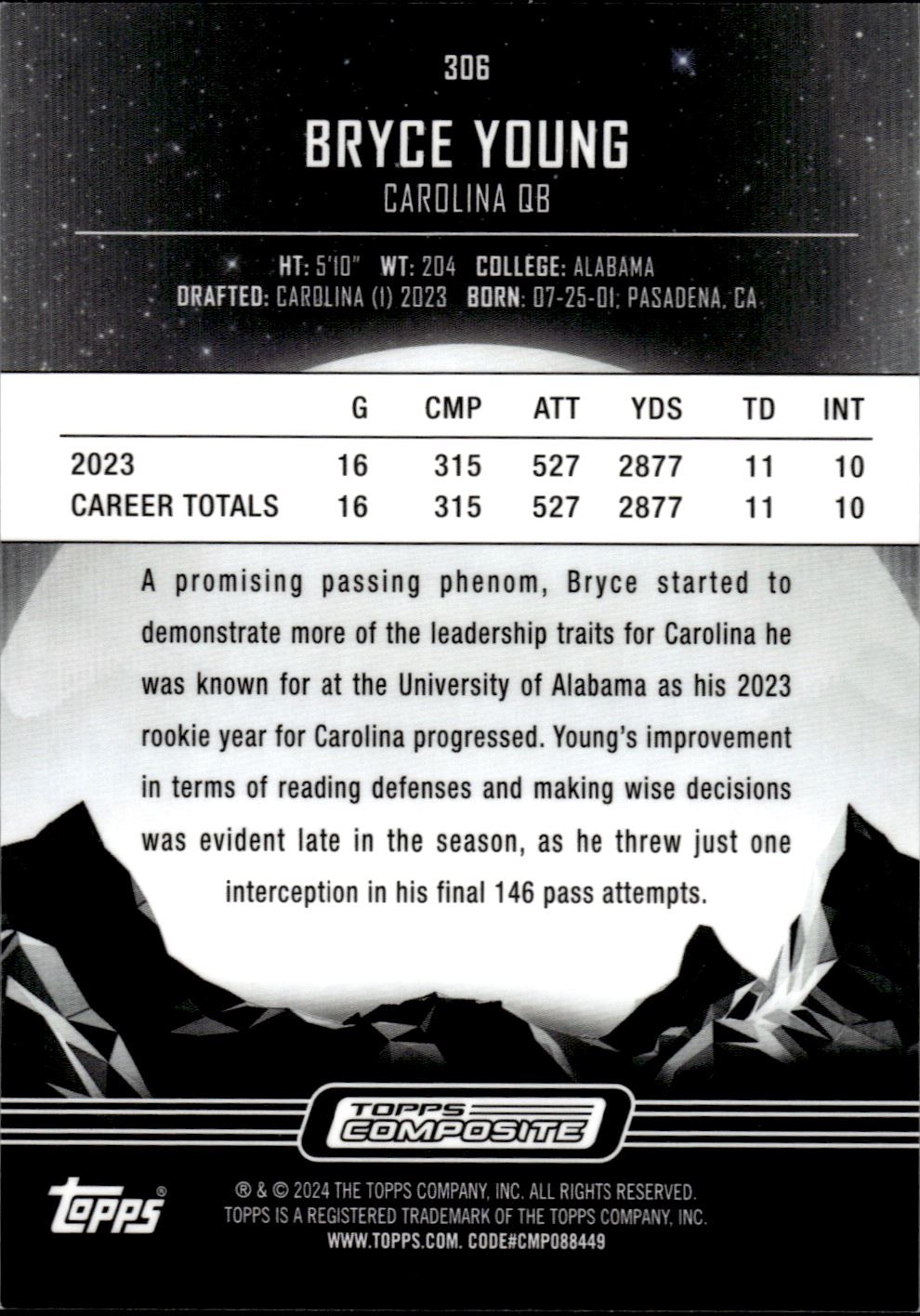 Bryce Young Midnight Refractor Topps Composite