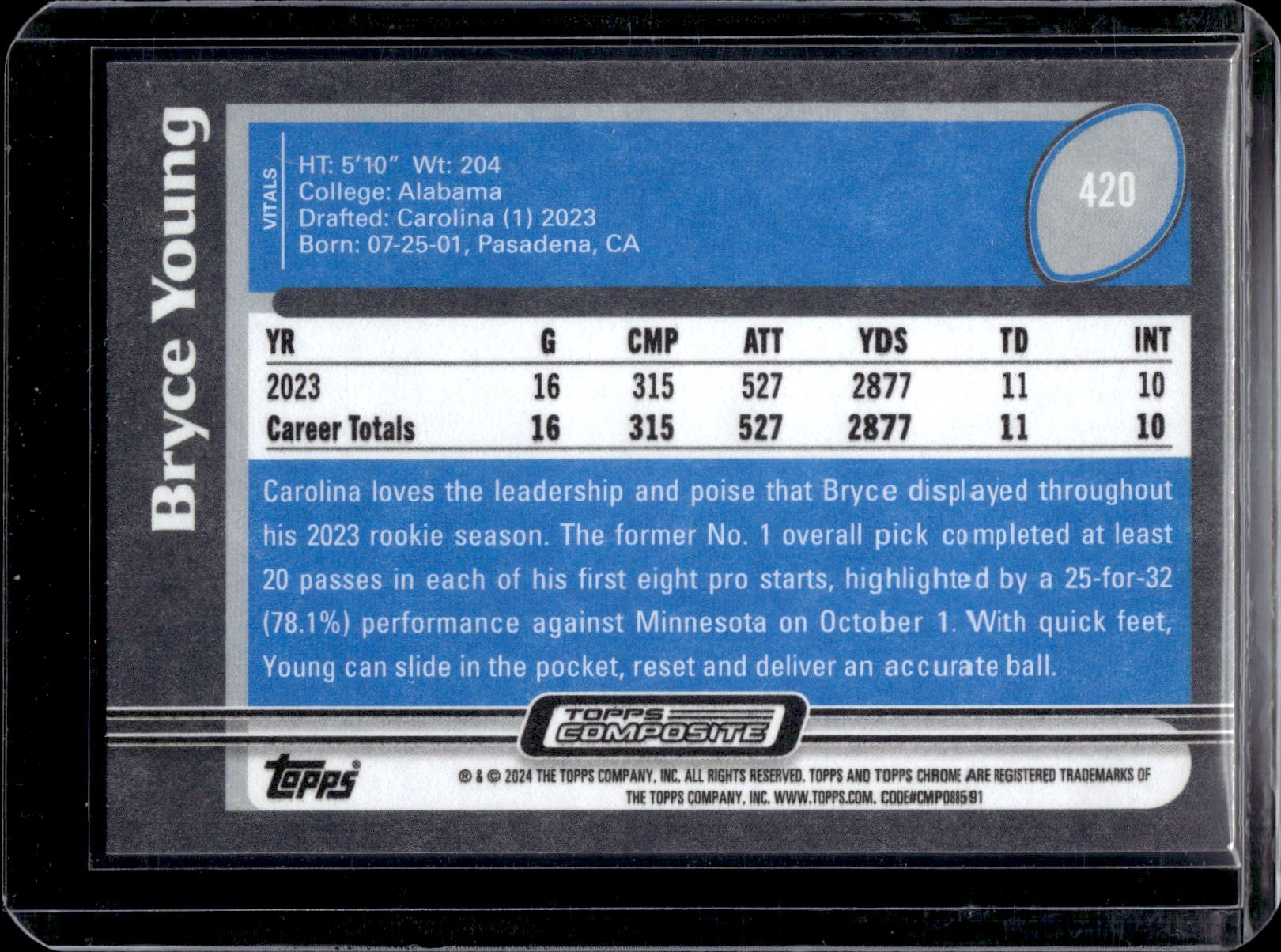 Bryce Young RC 2023 Topps Composite #420