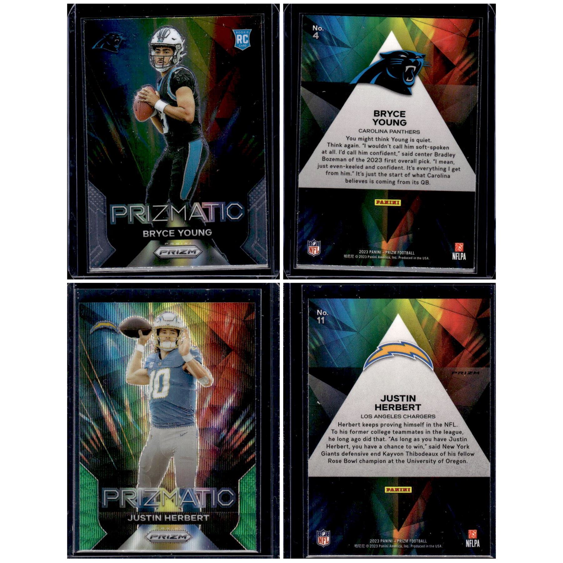 Bryce Young RC Prizmatic #4 & Justin Herbert 2023-'24 Prizmatic Green Wave Parallel #11.