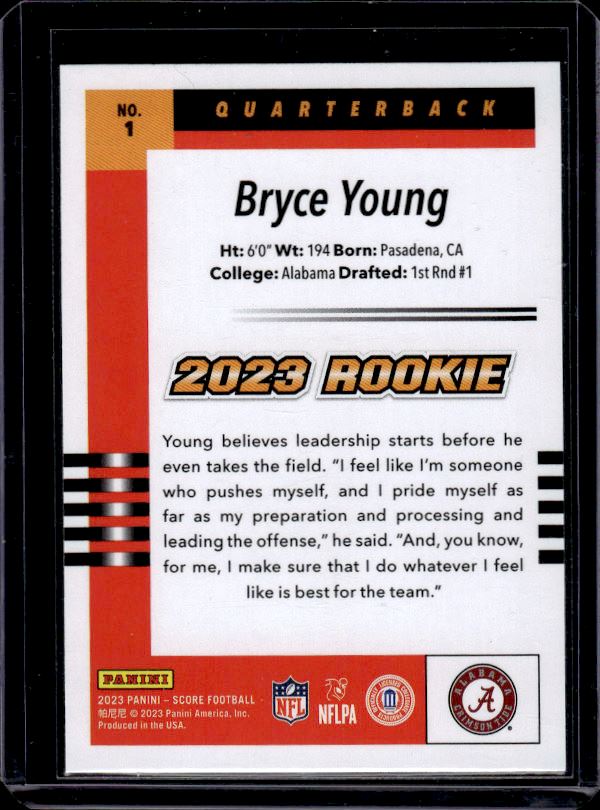 Bryce Young Rookie Card 2023 Panini Score #1